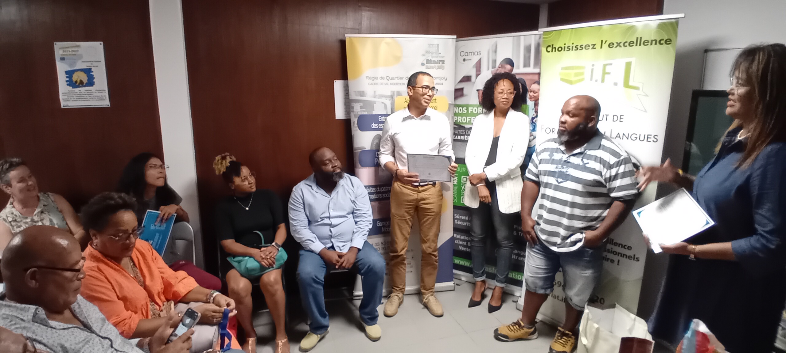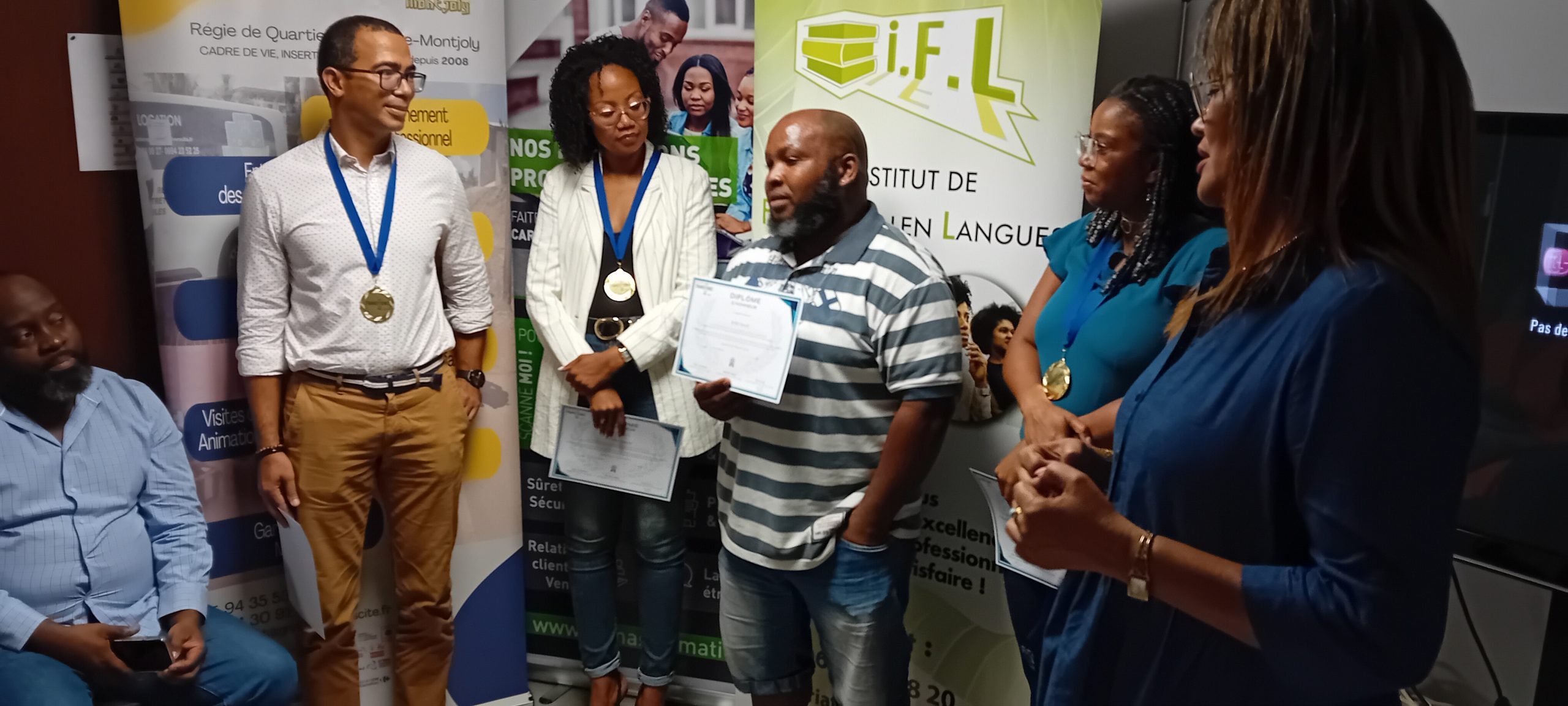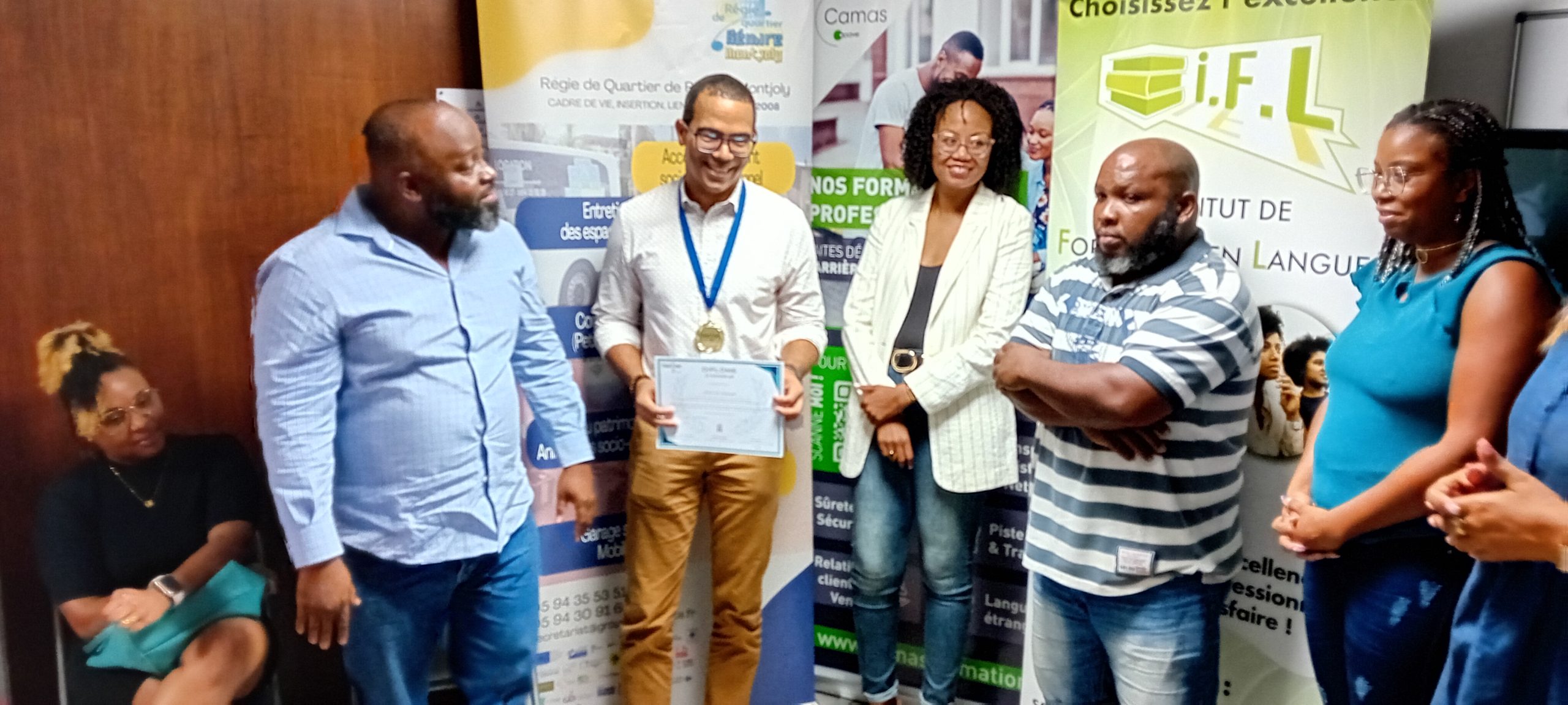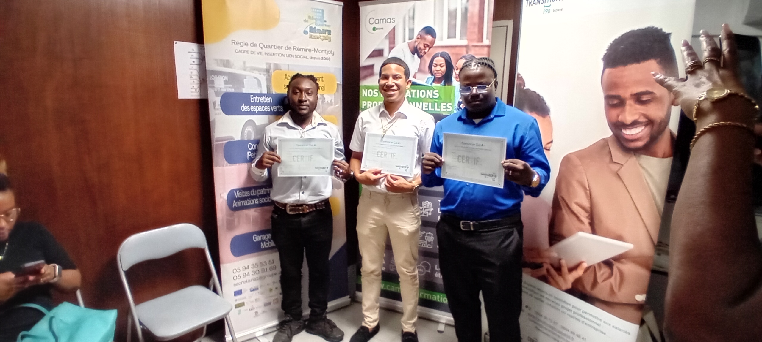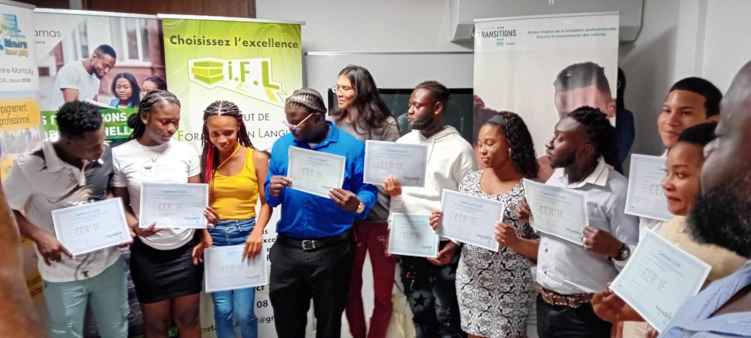 Afin d’honorer leurs efforts et leur détermination, Transitions Pro Guyane leur a remis un diplôme d’honneur, une médaille symbolique et un cadeau, soulignant la valeur de leur engagement dans la construction de leur nouveau projet professionnel.