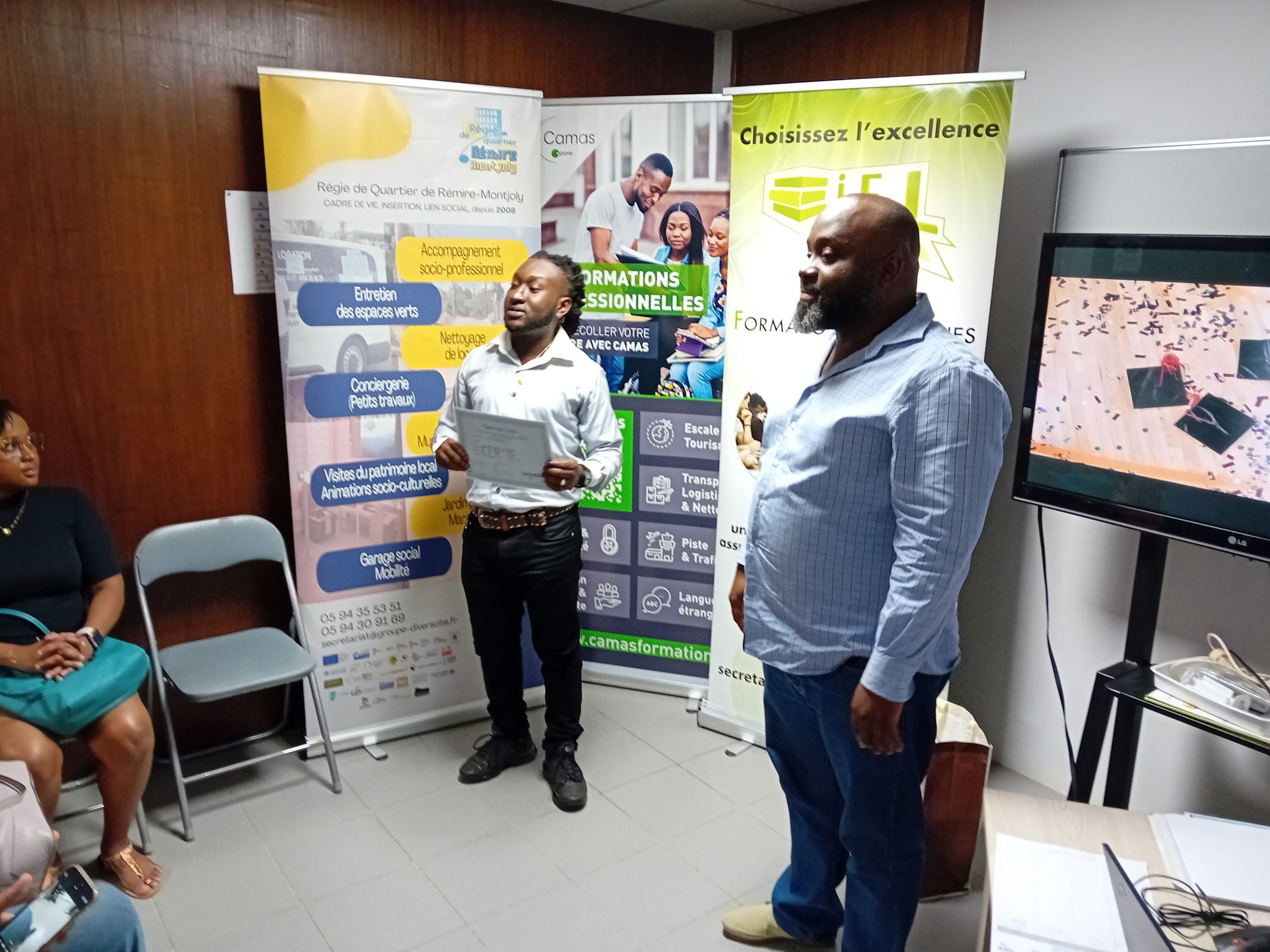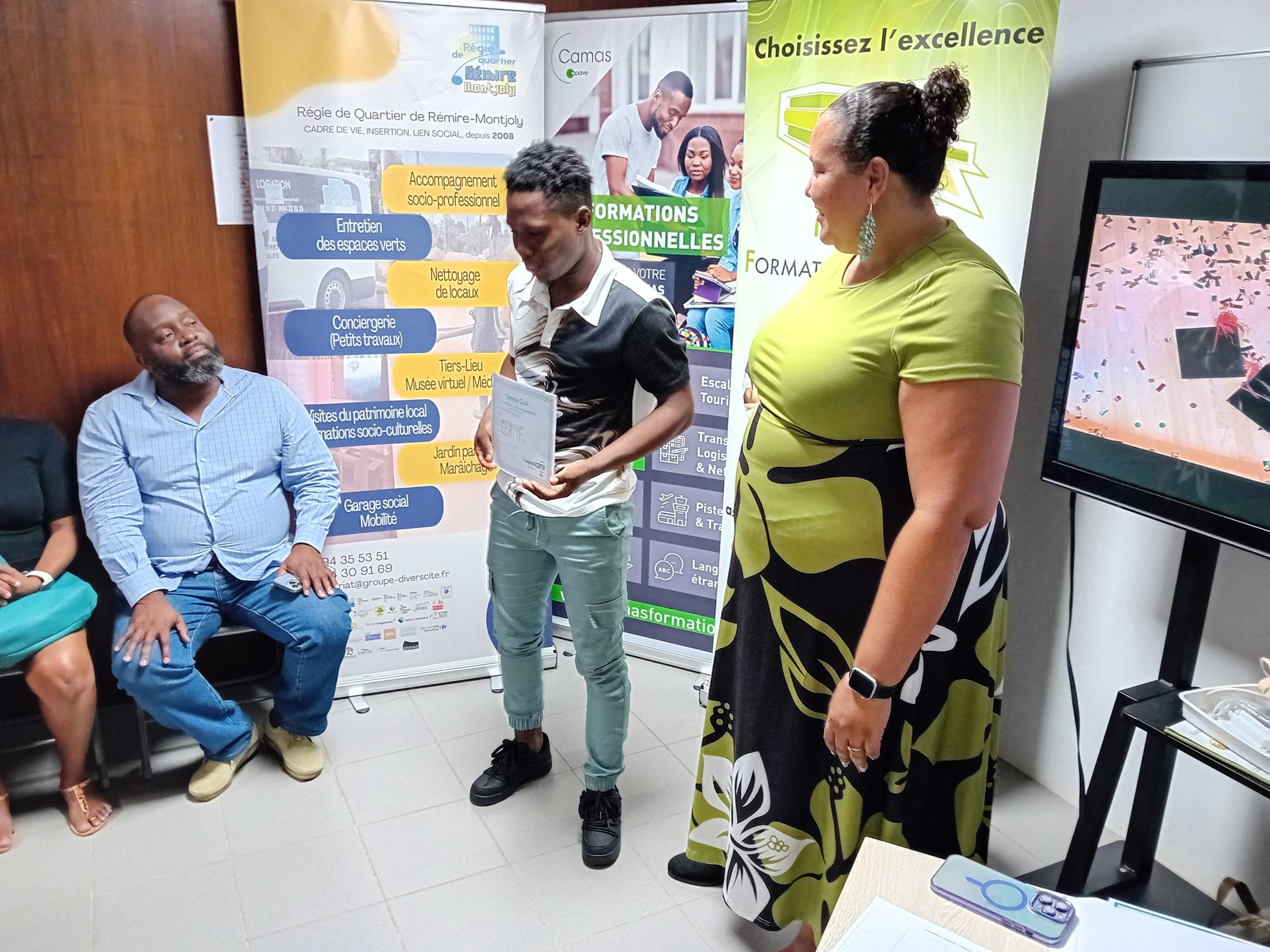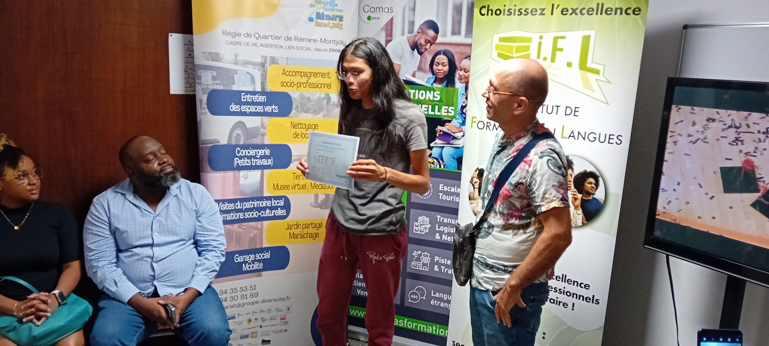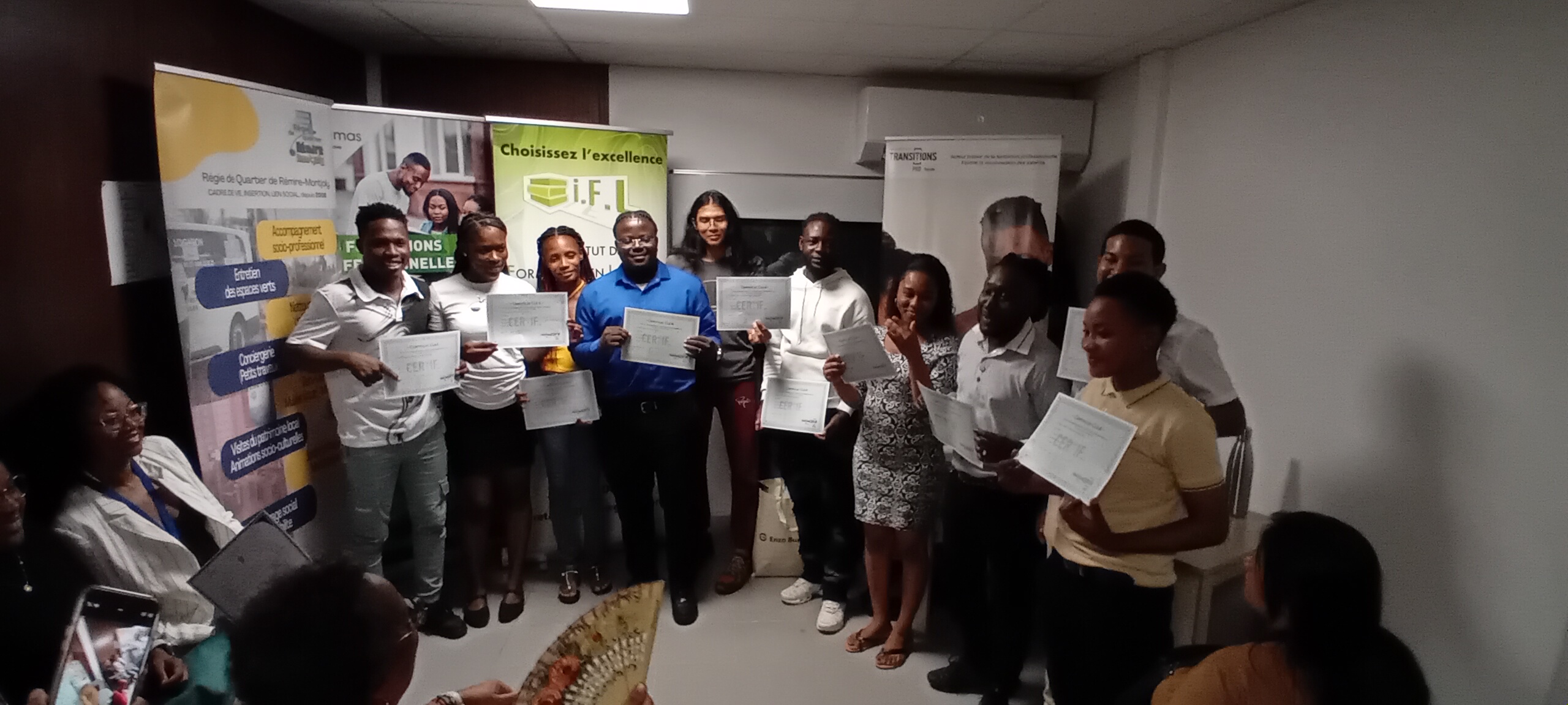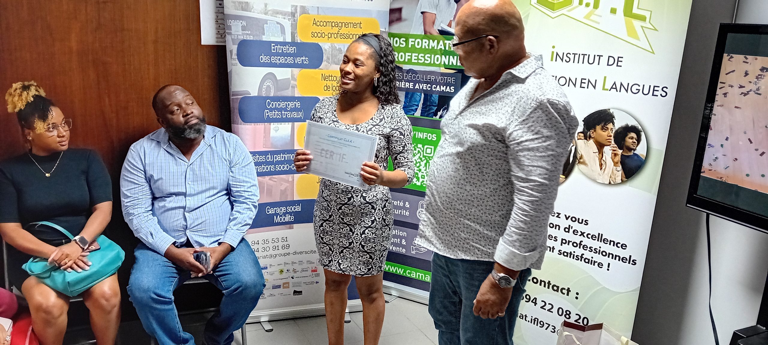 Afin d’honorer leurs efforts et leur détermination, Transitions Pro Guyane leur a remis un diplôme d’honneur, une médaille symbolique et un cadeau, soulignant la valeur de leur engagement dans la construction de leur nouveau projet professionnel.